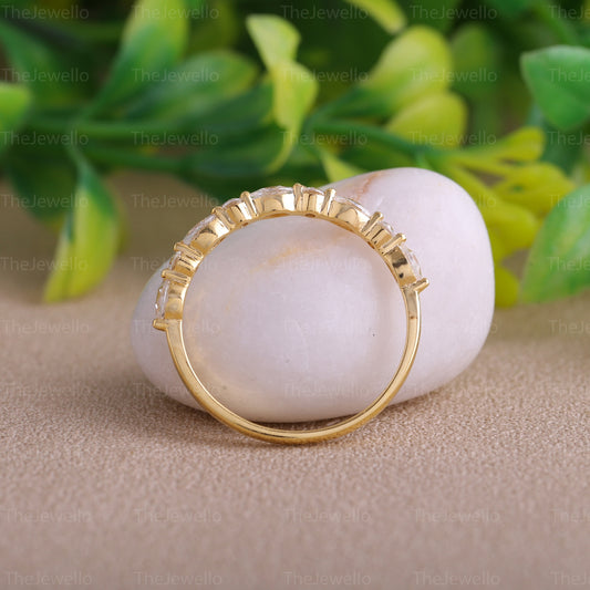0.42 Ct. Moissanite Diamond Gold Ring for Wedding - Eternity Band Ring - Engagement Ring for Her - Round & Marquise Cut Handmade Jewellery