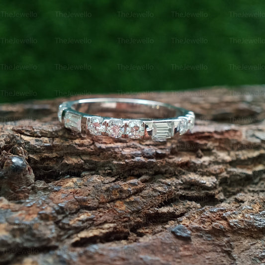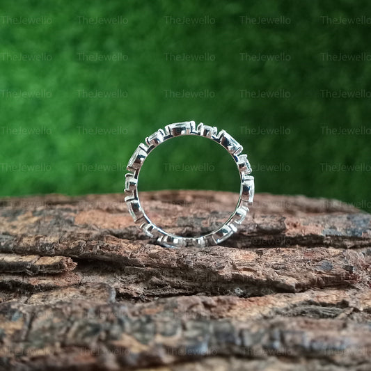 Round & Baguette Cut Moissanite Alternative Wedding Band, Minimalist Stacking Thin Band, Matching Band for Bridal Set, Eternity Band For Her