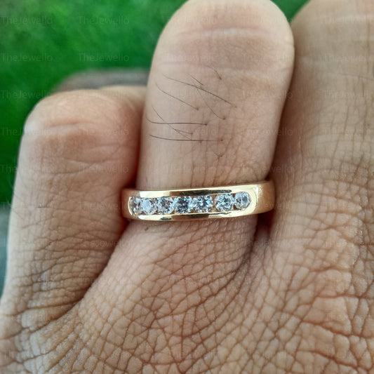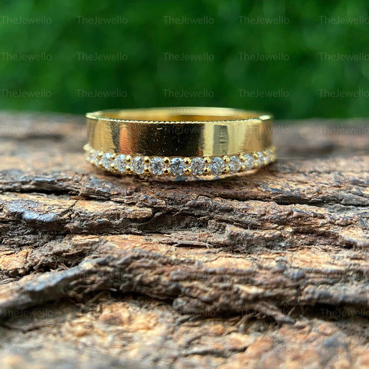 Round Cut Moissanite Eternity Band Ring 0.65 Ct. - 14K Yellow Gold Engagement Ring for Men - Men's Gold Ring - Wedding Ring for Him