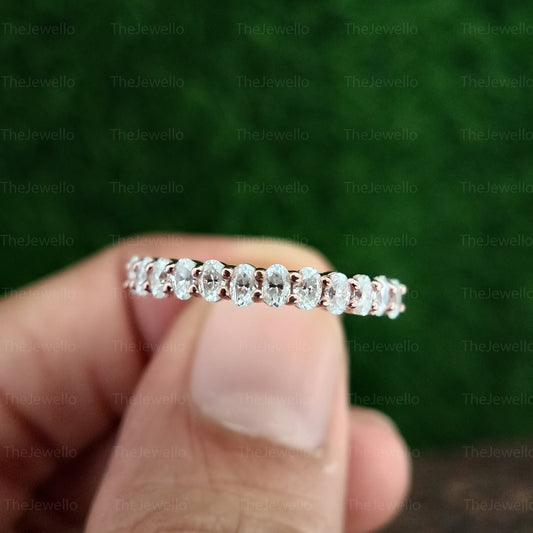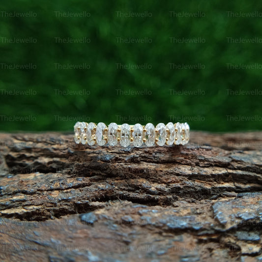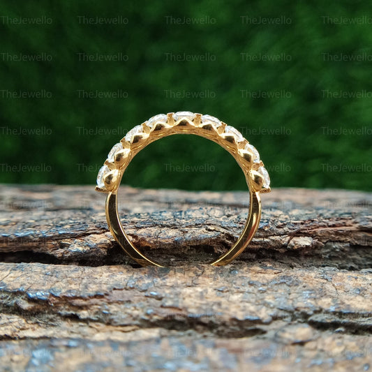 Super Sparkly 1.30 TCW Oval Cut Moissanite Wedding Band, Dainty Half Eternity Solitaire Band, Solid Yellow Gold Moissanite Diamond Band.