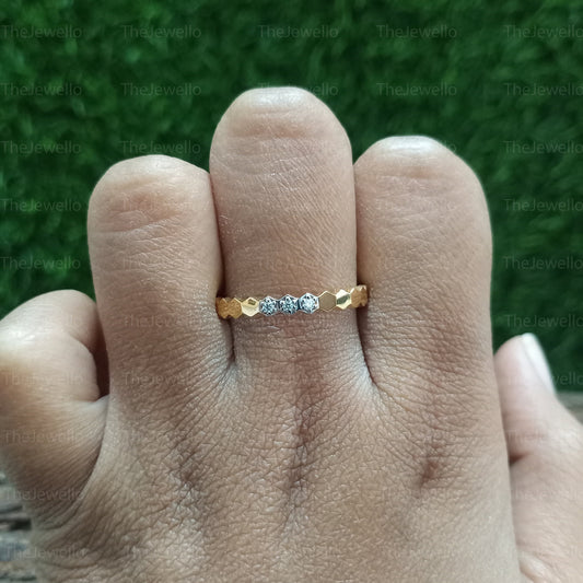 Small Three Stone Engagement Ring, Designer Round Cut Moissanite Wedding Band, Beautiful Solid Gold Handmade Bridal Ring