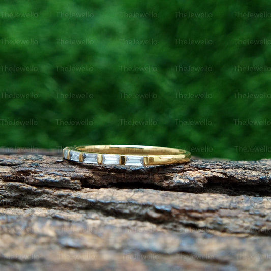 Moissanite wedding band, Women Vintage 1.00 CT Baguette Wedding Band, Yellow Gold Half eternity Matching Band, Bridal ring, promise gift