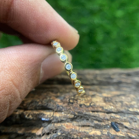 Round Solid Gold Bezel Wedding Band, Bezel Stacking Band ,Bezel Wedding Band Full Eternity Band, Moissanite Wedding Band