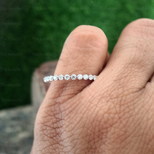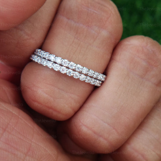 1.70mm Round Cut Moissanite Wedding Band, Minimalist Bridal Matching Band, Vintage Stacking Band, Full Eternity Daily Wear Ring