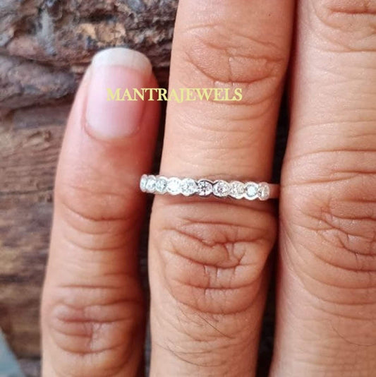 2.0 MM Round Cut Moissanite Wedding Band, Dainty Bezel Minimalist Band, Moissanite Eternity Band,Stacking Moissanite Ring -Wedding Band Gift