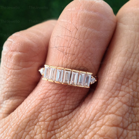 14k Gold Baguette Wedding Band, Vertical Baguette Moissanite Wedding Band, Brilliant Moissanite Wedding Band For Her