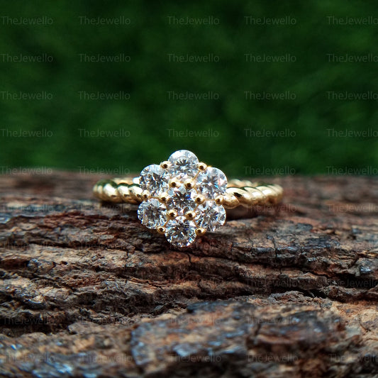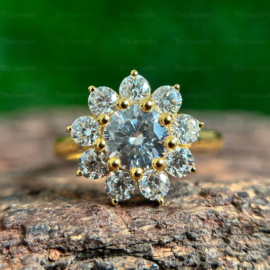 Round Cut Moissanite Halo Ring/ Unique Flower Design Wedding Ring/ Seven Stone Solitaire Ring For Women/ Daily Wear Diamond Jewelry.
