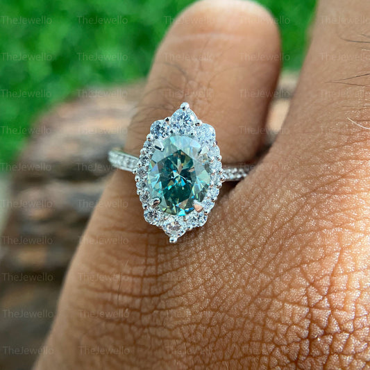 Green Gemstone Moissanite Oval Ring Solid Gold Women's Jewelry 14K/18K Gold Engagement & Wedding Anniversary Gift for Her