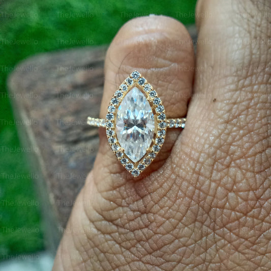 Marquise Halo Style Moissanite Ring, 2Ct Marquise Cut Engagement Ring, Solid 10k/14k/18k Yellow Gold Ring, Anniversary Gift Ring