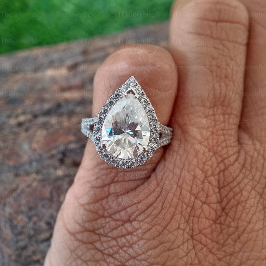 Halo Pear Moissanite Ring, 6 Ct Pear Cut Moissanite Engagement Ring, Large Stone White Gold Ring, Solitaire Accent Women's Wedding Ring