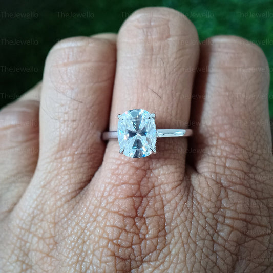 2.70 CT Cushion Cut Moissanite Engagement Ring, Minimalist Elongated Cushion Solitaire Ring, Hidden Halo Engagement Ring ,Gift For Her