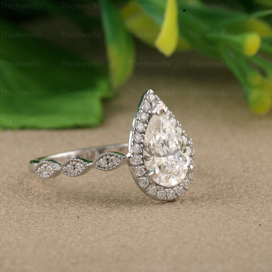 1.50ct Pear Moissanite Ring Halo Pear Moissanite Engagement Rings 10k White Gold Wedding Rings Pear Shaped Moissanite Anniversary Rings