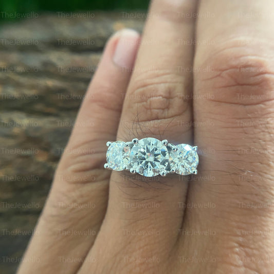 4 TCW Round Brilliant Colorless Moissanite Ring, Three Stone Moissanite Ring, 10k White Gold Engagement Ring, Christmas Ring Gift For Love