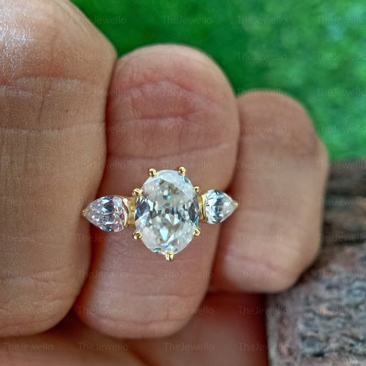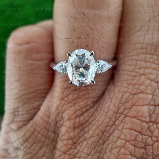 2.21Ct Oval Cut Moissanite Wedding Ring, Pear Side Stone Ring, Anniversary Ring, Oval Moissanite Engagement White Gold Bridal Ring
