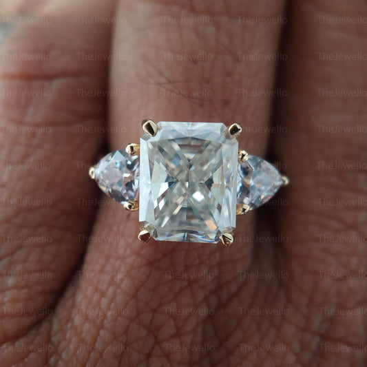 3.55 Carat Radiant Cut Moissanite Ring, Three Stone Engagement Ring, Solid Yellow Gold Wedding Ring, Trillion Cut Ring, Gifts For Her