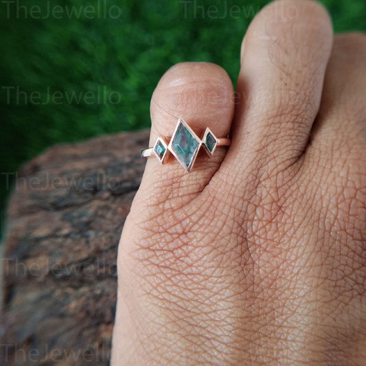 2.00ct Kite Moss Agate engagement ring / Green mossagate womens ring / 14k solid rose gold ring / Three Stone Mossagate ring / Gemstone Ring
