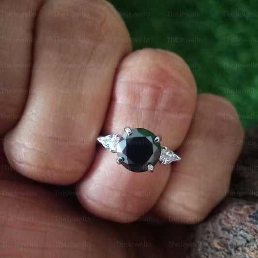 Black Moissanite Engagement Ring, 2.60 Carat Round Cut Moissanite Wedding Ring, 3 Stone Round Cut Moissanite Ring