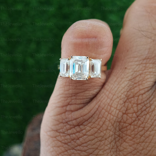 3.10 CT Emerald Cut Three Stone Moissanite Ring, Solid Real Gold18k Yelow Gold ring Engagement Ring, Anniversary Gift for Wife