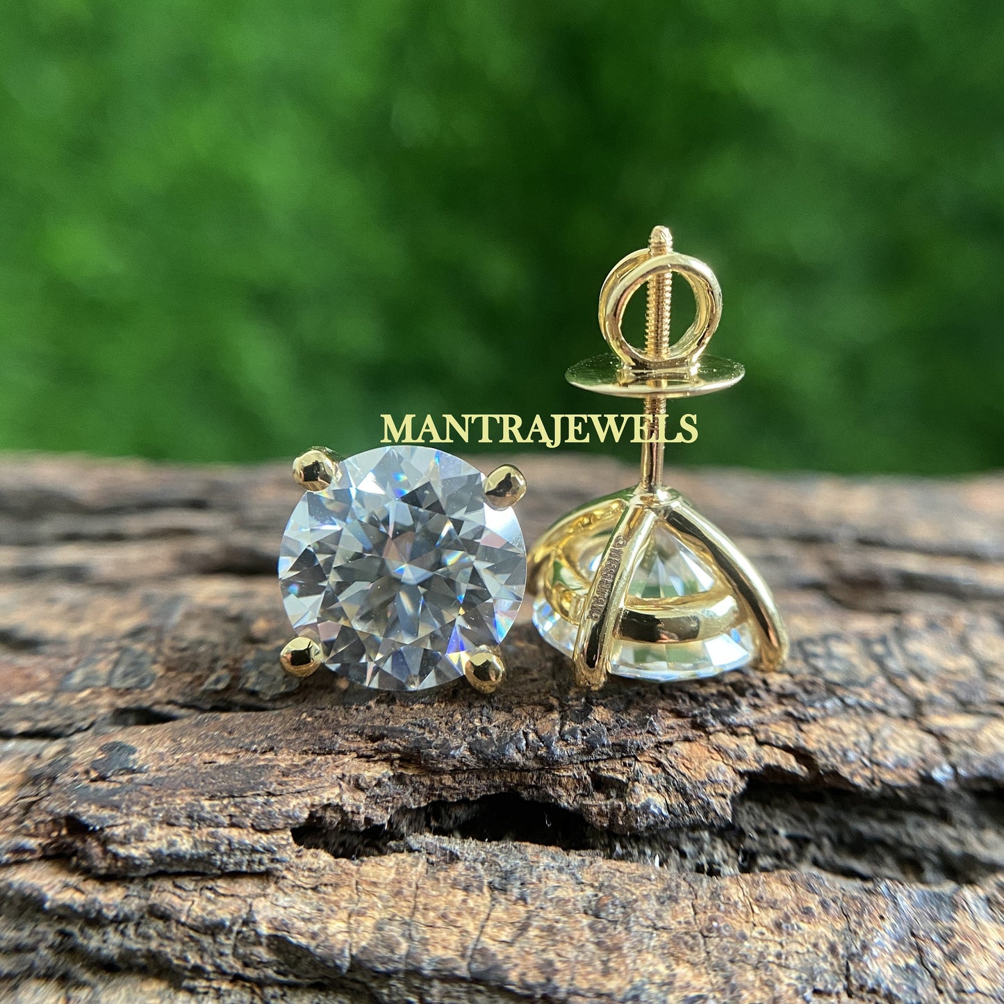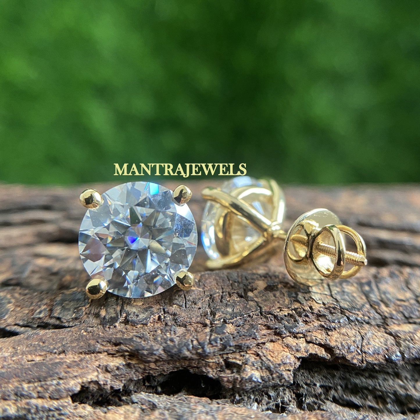 11.00 TCW Pairs Of Studs/ Round Cut Moissanite Diamond Earrings/ Yellow Gold Moissanite Earrings/ Dainty Earrings For Graduation Gift.