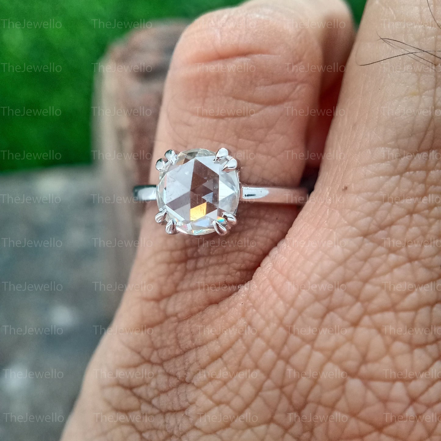 2.00ct Round Rose Cut Moissanite Ring, Solitaire Round Moissanite Engagement Ring in 950 Platinum, Anniversary Rings for Women