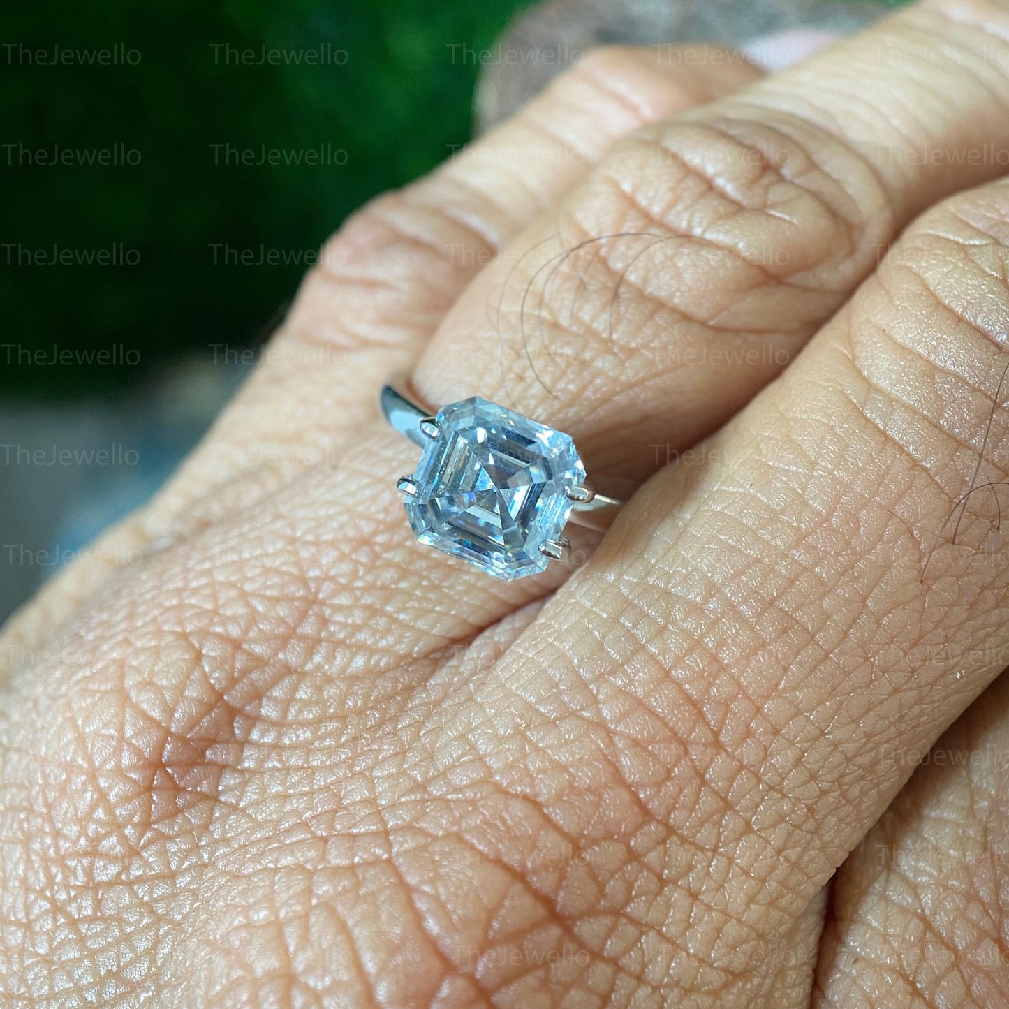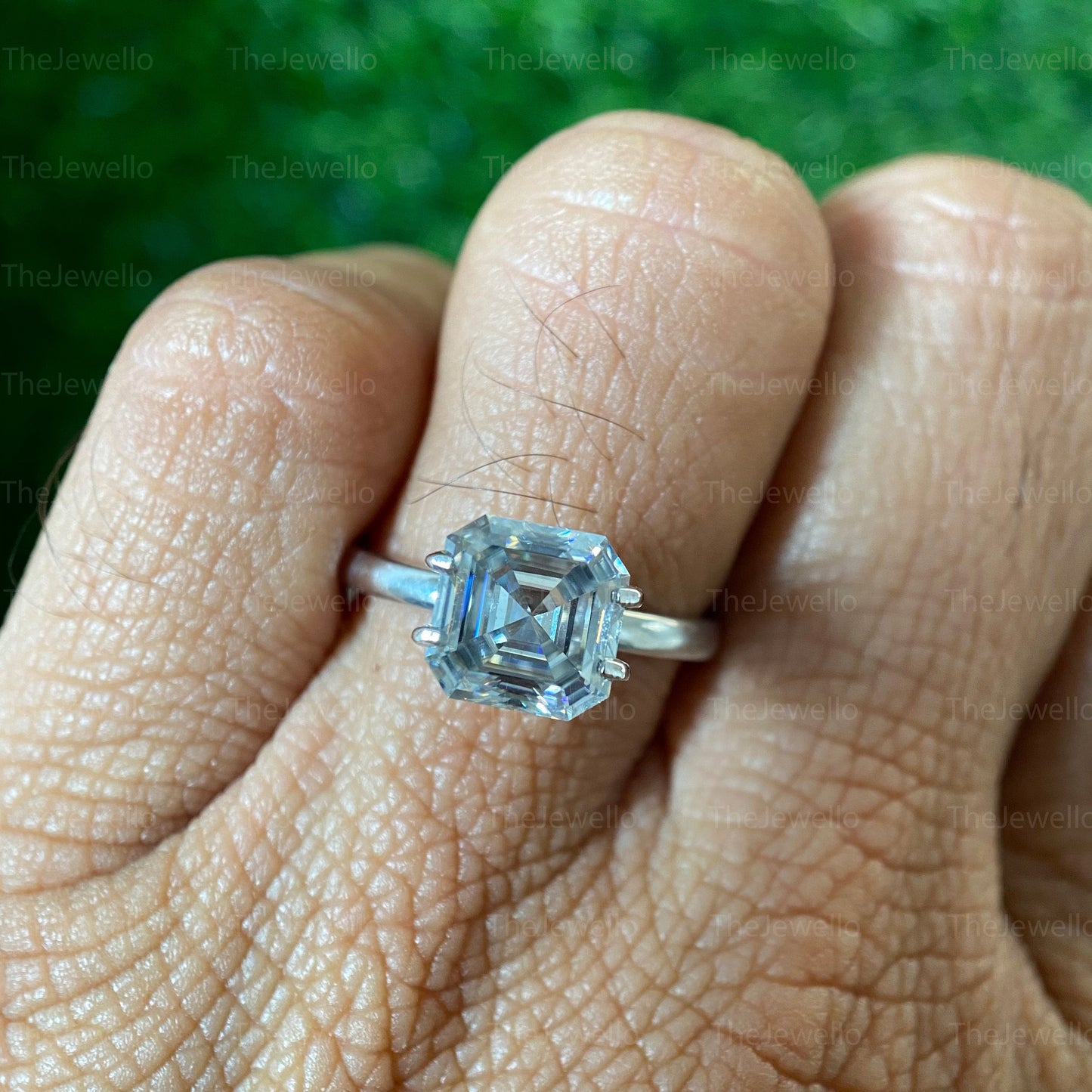 2.90CT Asscher Cut Moissanite Engagement Ring, Asscher Cut Moissanite Anniversary Ring, 925 Sterling Silver Square Diamond Ring
