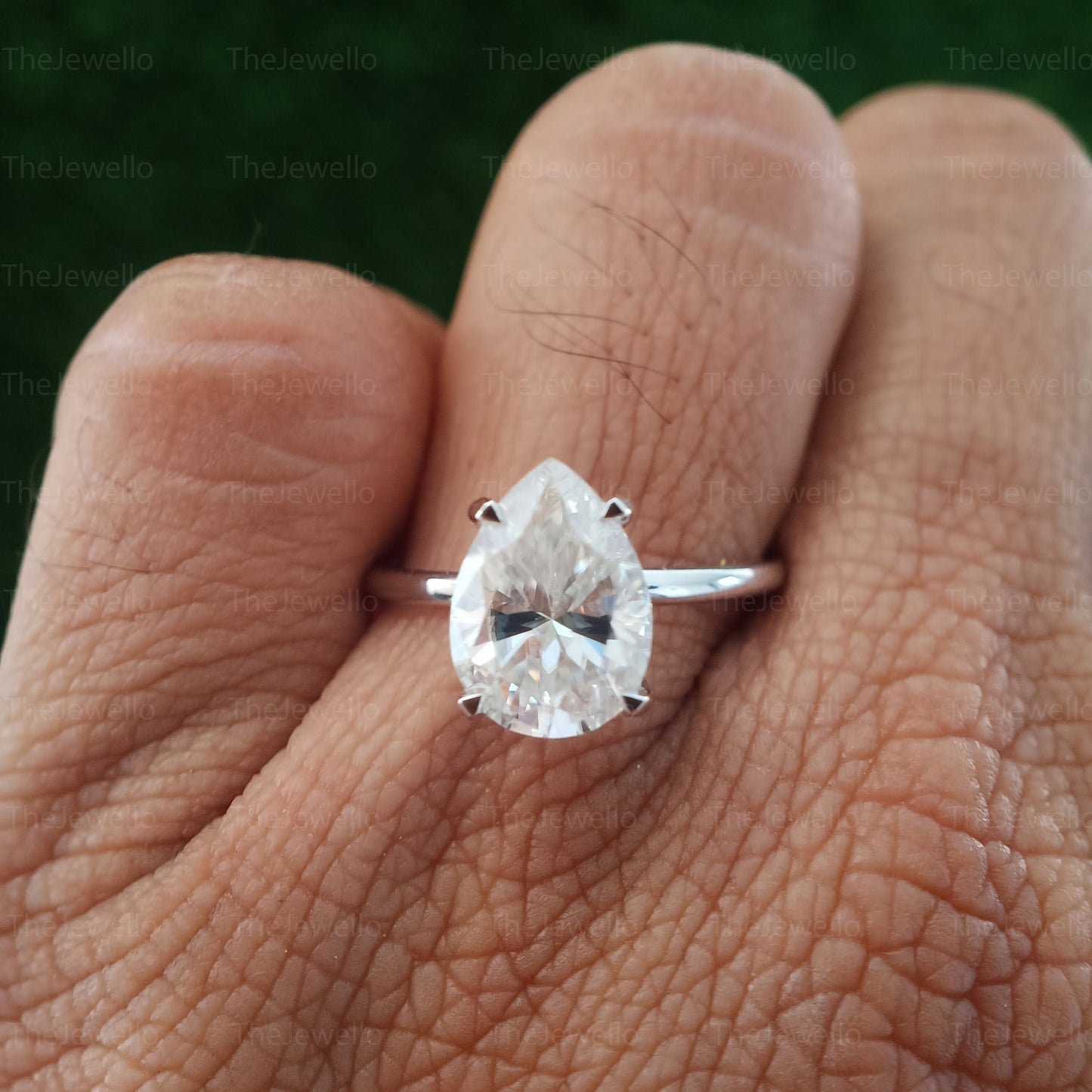 3.00ct Pear Moissanite Engagement Ring, Knife Edge Pear Cut Solitaire Moissanite Engagement Ring, 14K / 18K White Gold Solitaire Ring