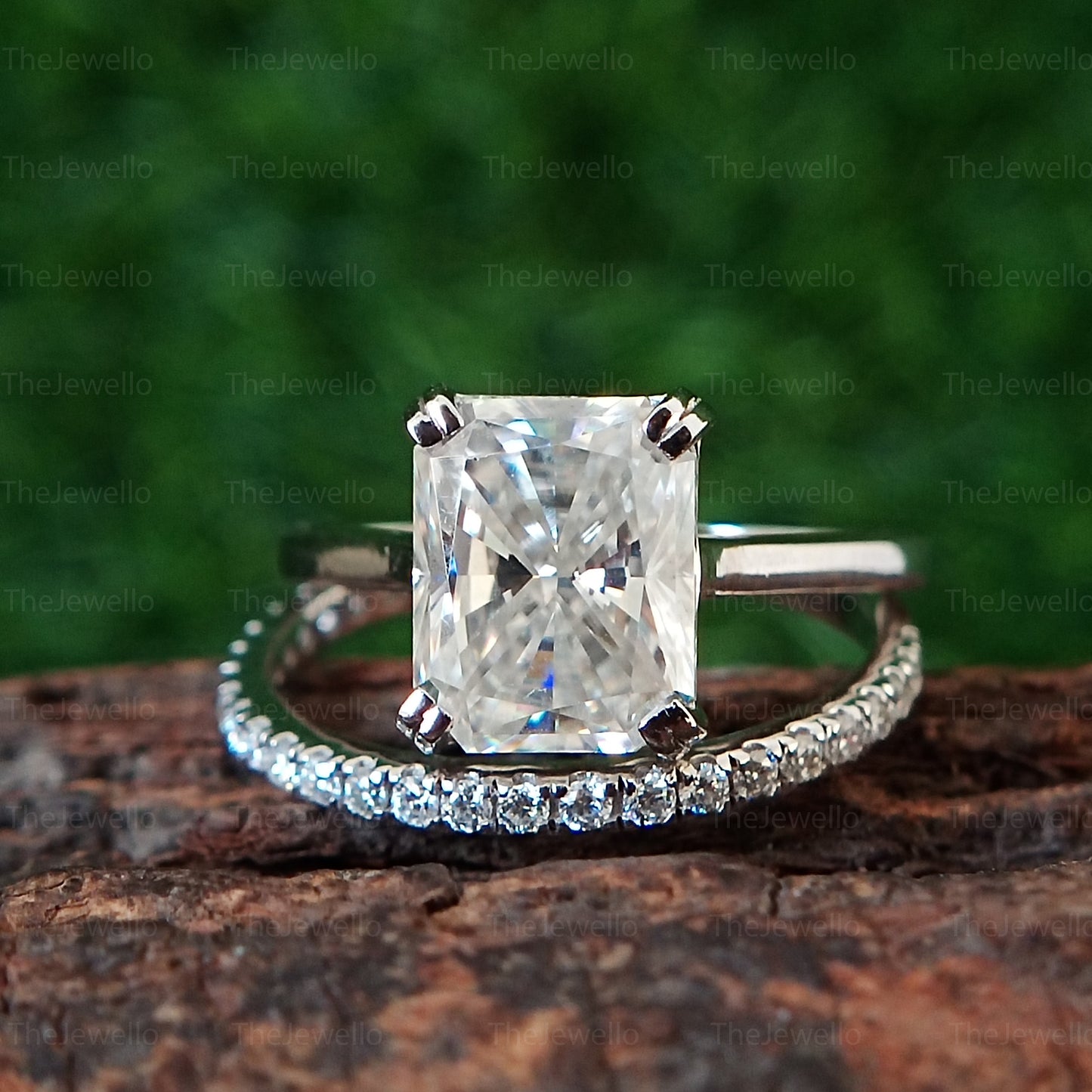 3.55Ct Radiant Cut Engagement Ring Set Radiant Moissanite Catherdal Set Solitaire Ring with Eternity Band Yellow Gold Wedding Ring Set