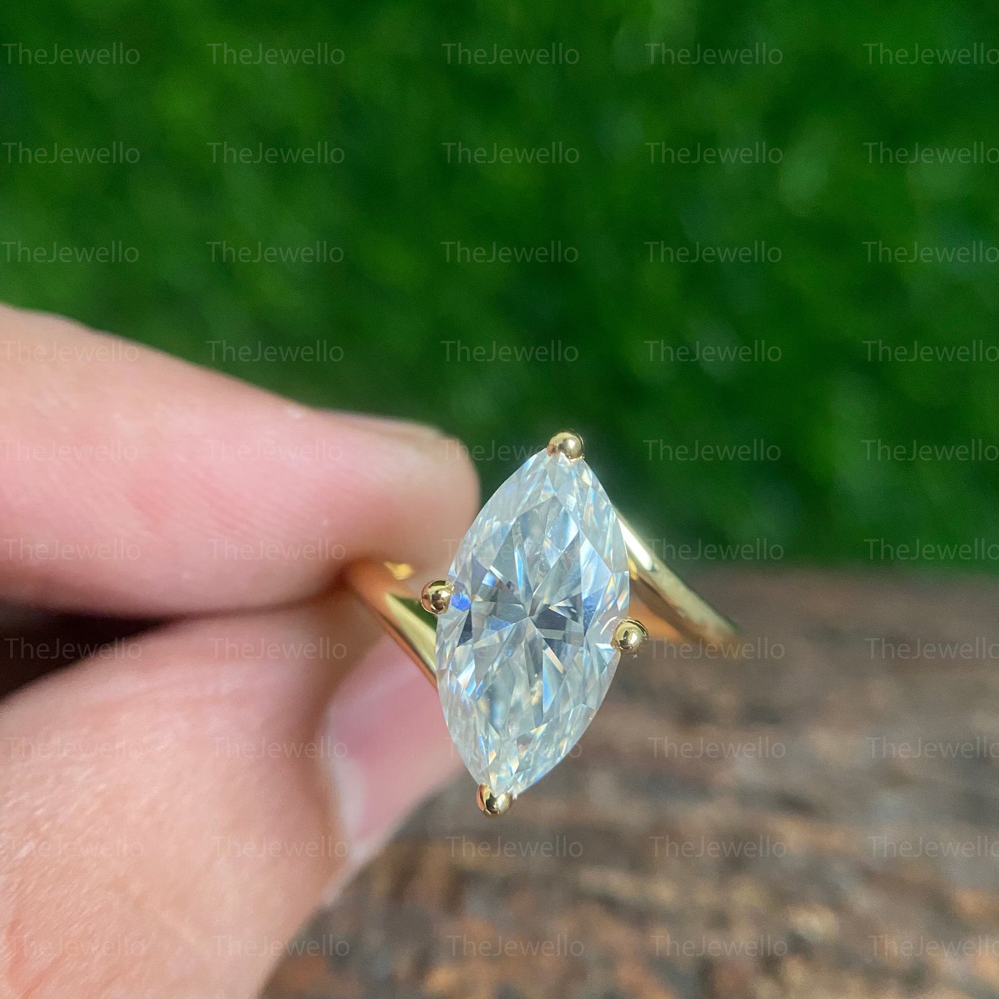 4.20CT Marquise cut Moissanite ring for women, Moissanite Yellow Gold Ring, Solitaire Diamond Wedding Rings for Women,Promise Gift for Women