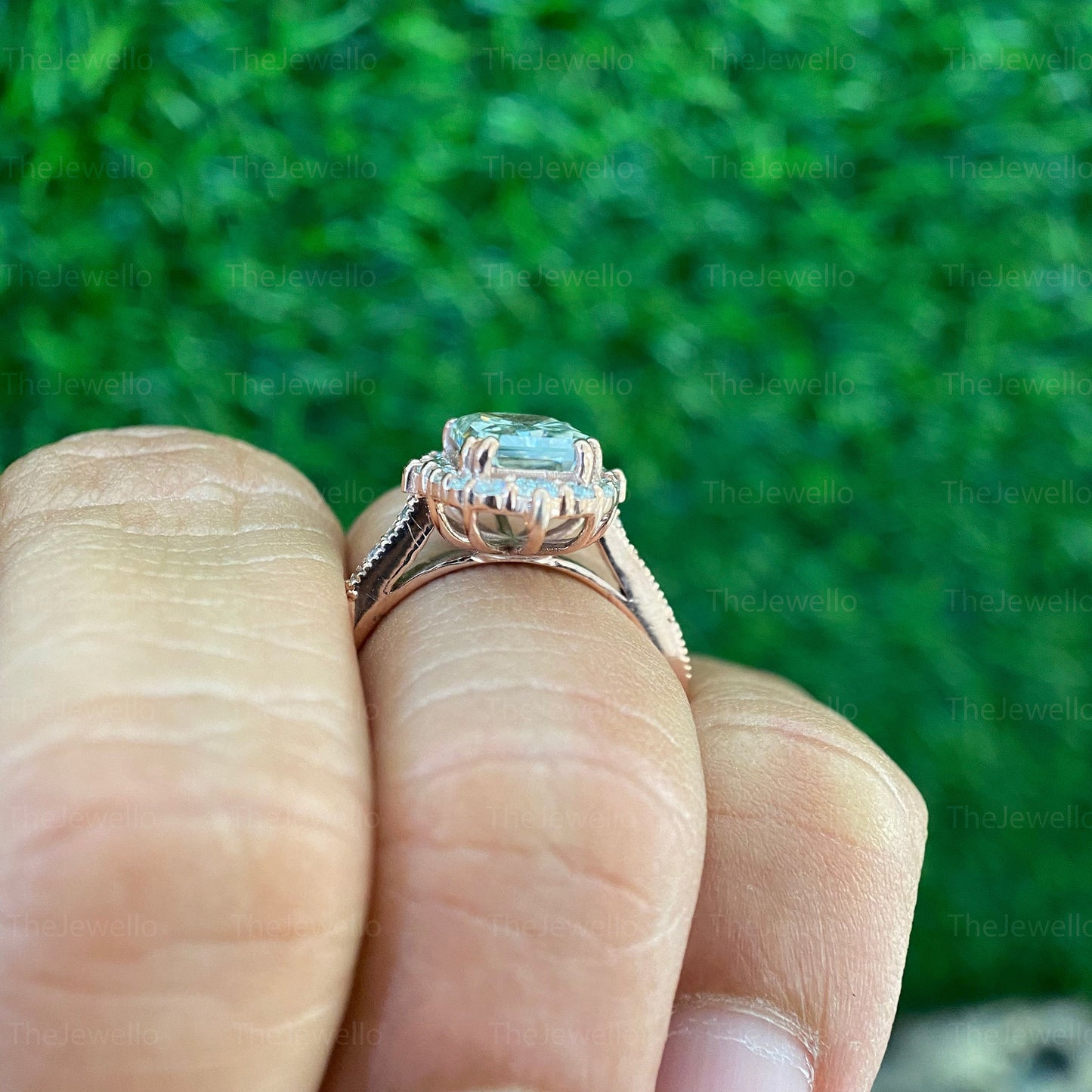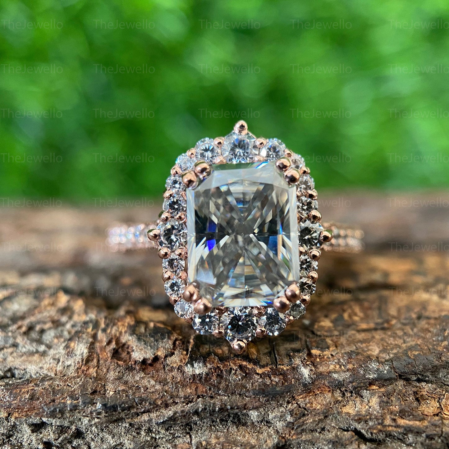 Antique Vintage Style 3.74 TW Radiant Cut Grey Moissanite Ring, Halo Engagement Ring, Double Claw Prongs, Solid Rose/White/Yellow Gold Ring