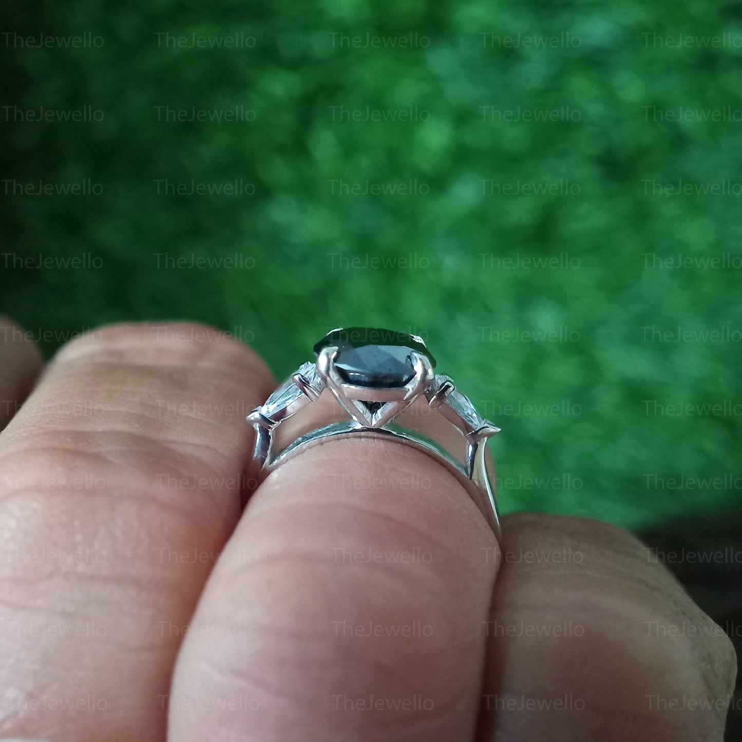 Black Moissanite Engagement Ring, 2.60 Carat Round Cut Moissanite Wedding Ring, 3 Stone Round Cut Moissanite Ring