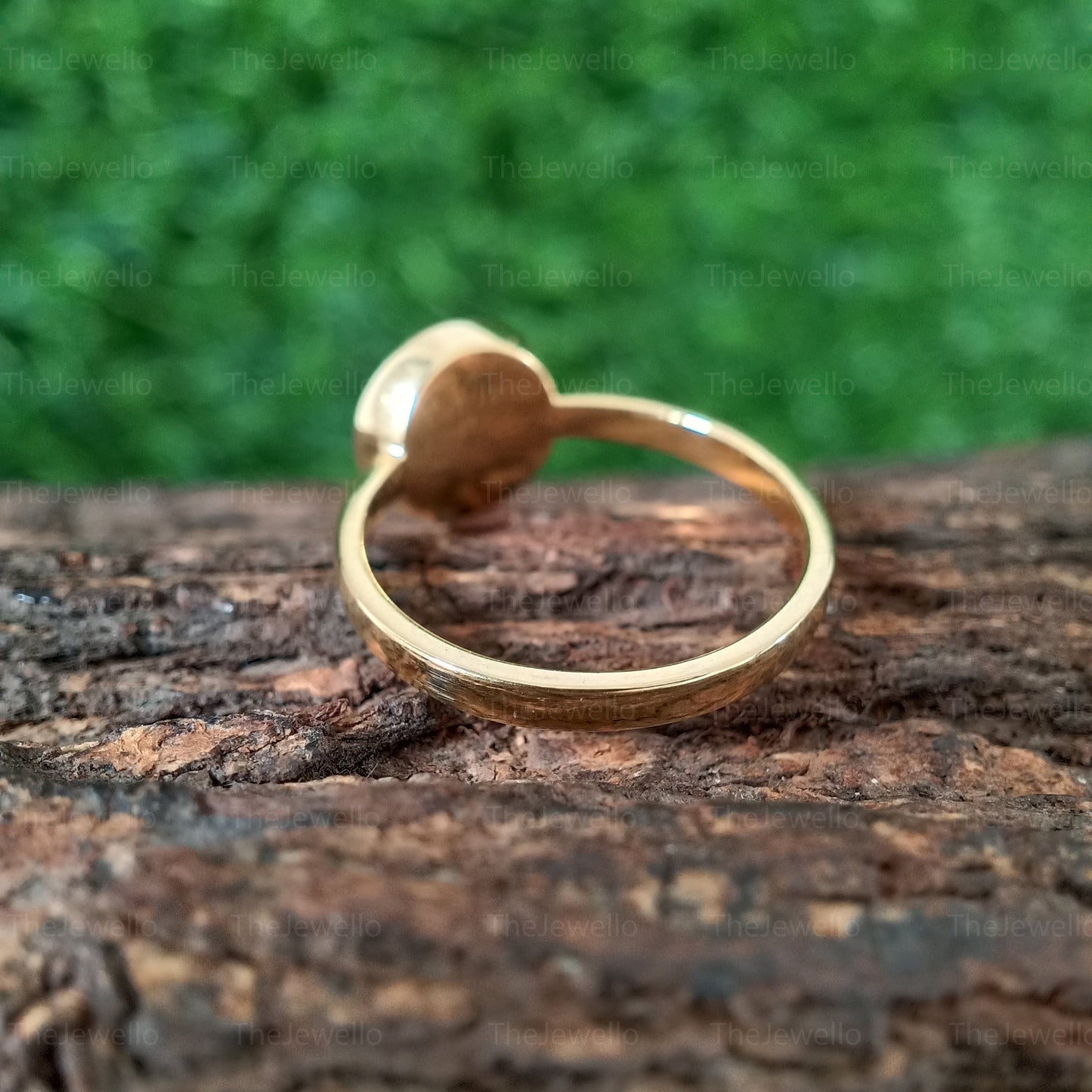 Blue Green Moissanite Ring, Round Rose Cut Moissanite Engagement Ring, Solitaire Signature Bezel Set Ring in Solid Yellow Gold