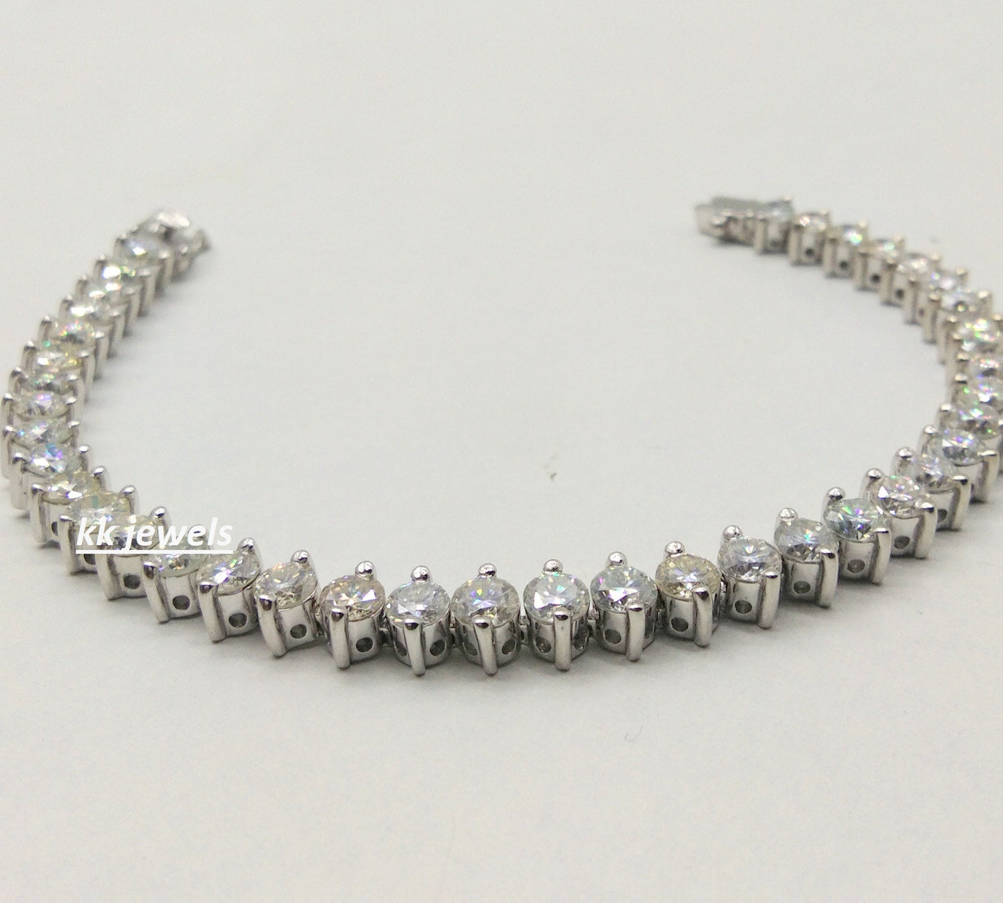 Colorless Moissanite Bracelet 10k/14K White Gold Bracelets Or 925 Sterling Silver Bracelet 15.00ct Round Solitaire Tennis Bracelets