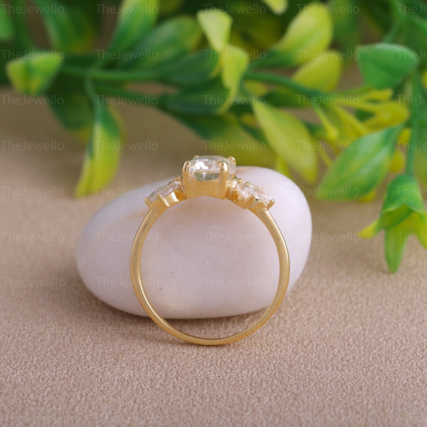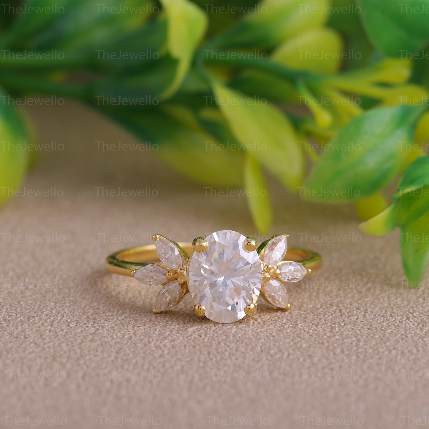 Moissanite Oval Colourless Engagement Ring, Solitaire Accent Moissanite Ring, Marquise Cut Side Stone ring, 18k Solid Gold Engagement Ring