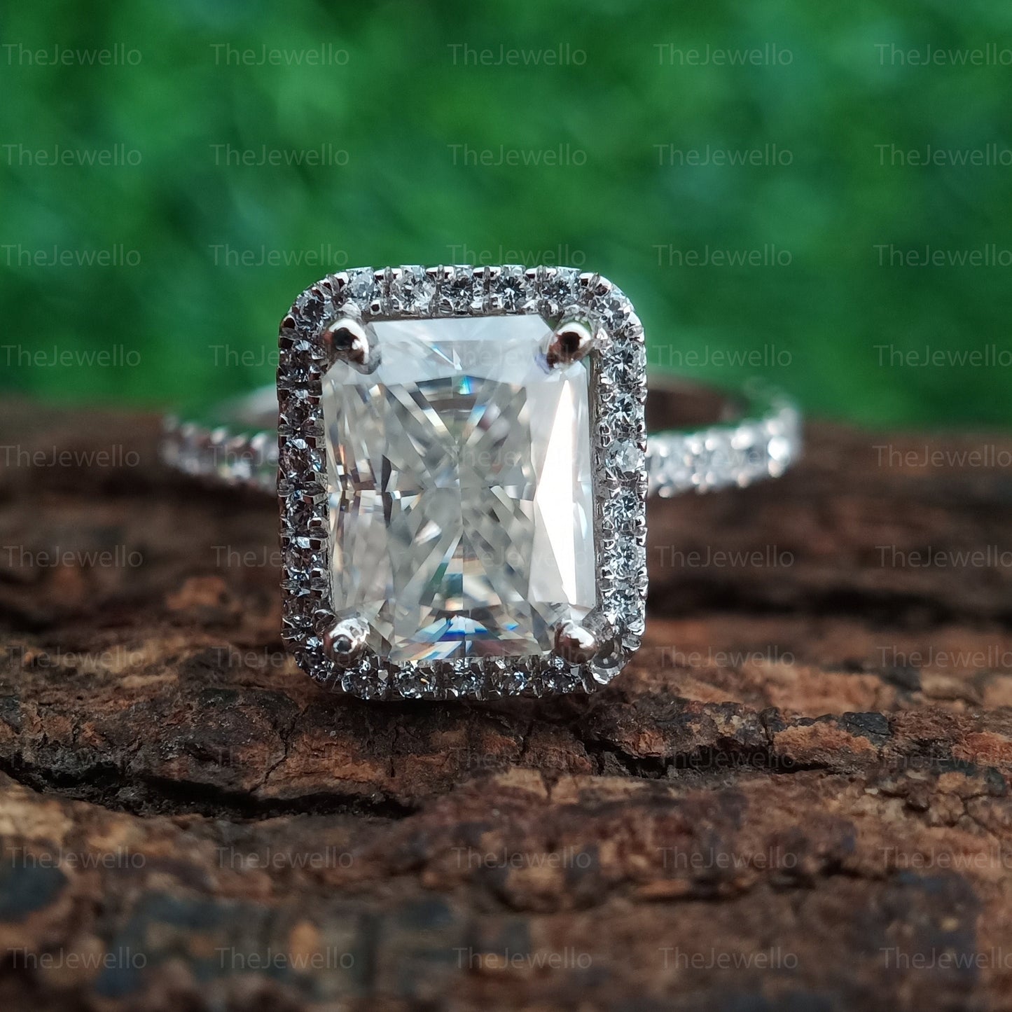 Moissanite Radiant Cut Engagement Ring, 2.50 Carat Radiant Cut Moissanite Diamond Wedding Anniversary Ring in 14k Solid White Gold