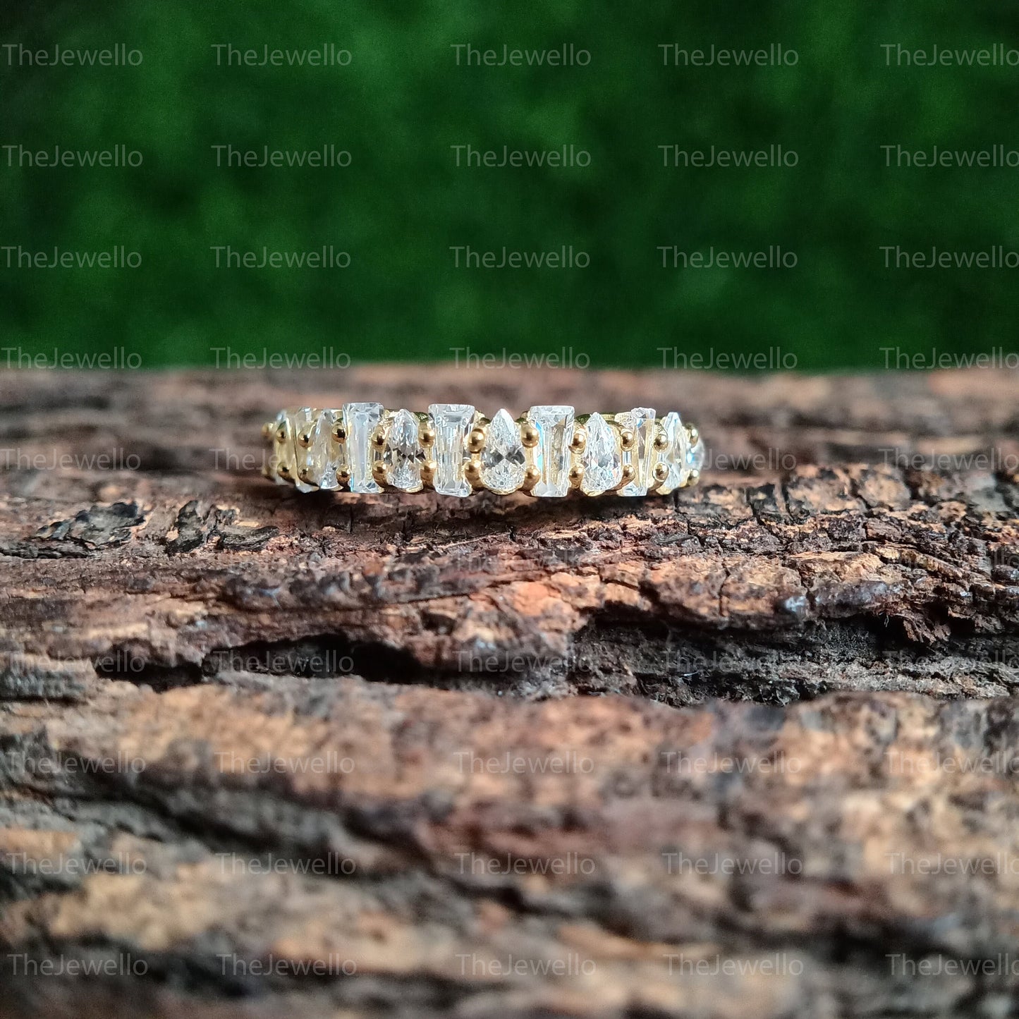 moissanite wedding band, wedding band set hers, moissanite eternity band half, womens wedding band moissanite, ring faux diamond yellow gold