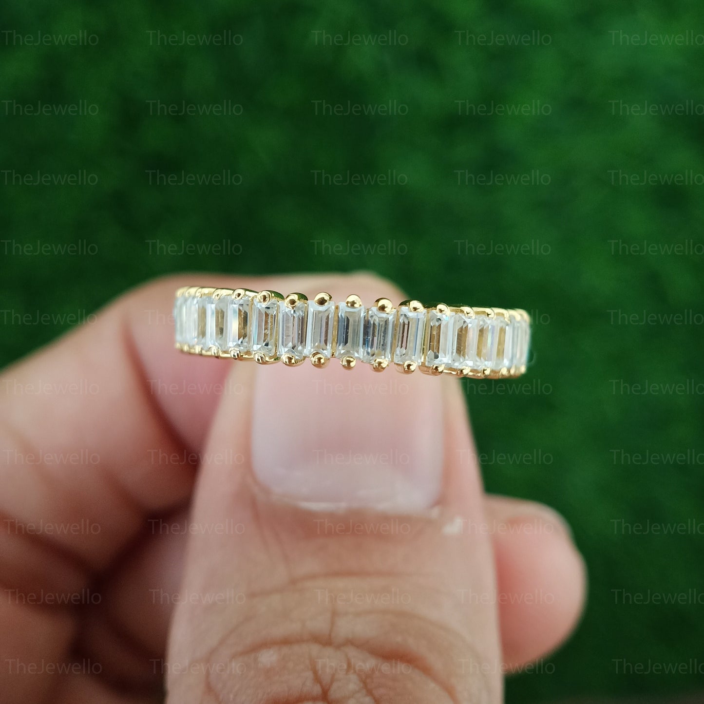 Moissanite wedding band, Women Vintage 1.00 CT Baguette Wedding Band, Yellow Gold Half eternity Matching Band, Bridal ring, promise gift