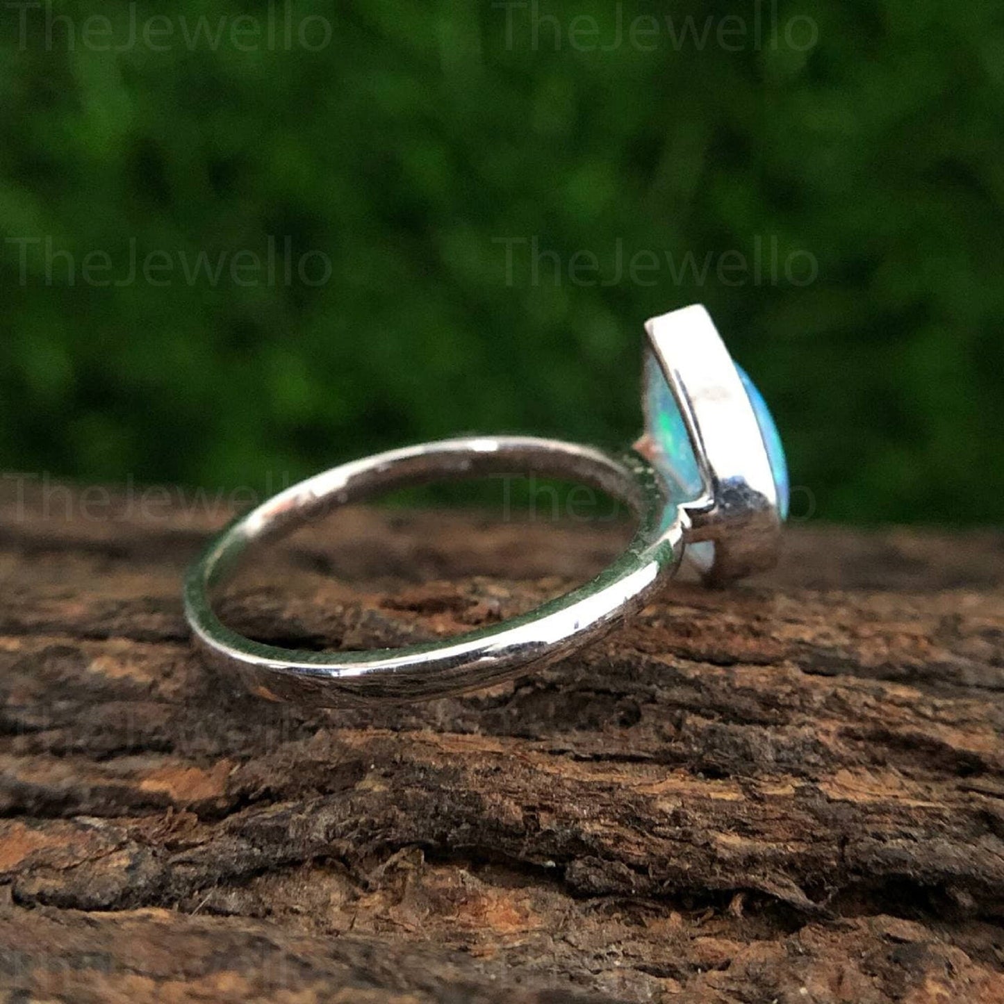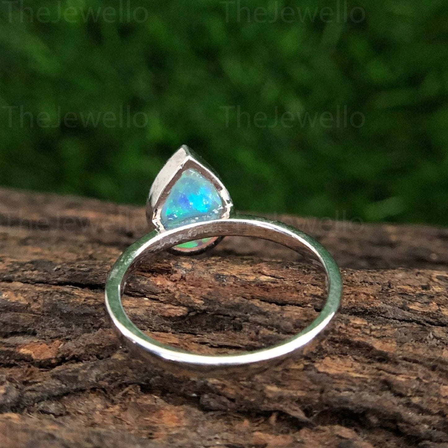 October Birthstone Ring, 2.50ct Pear Shaped Natural Opal Engagement Ring Set, Vintage Unique White Gold Wedding Ring, Birthstone Women Ring