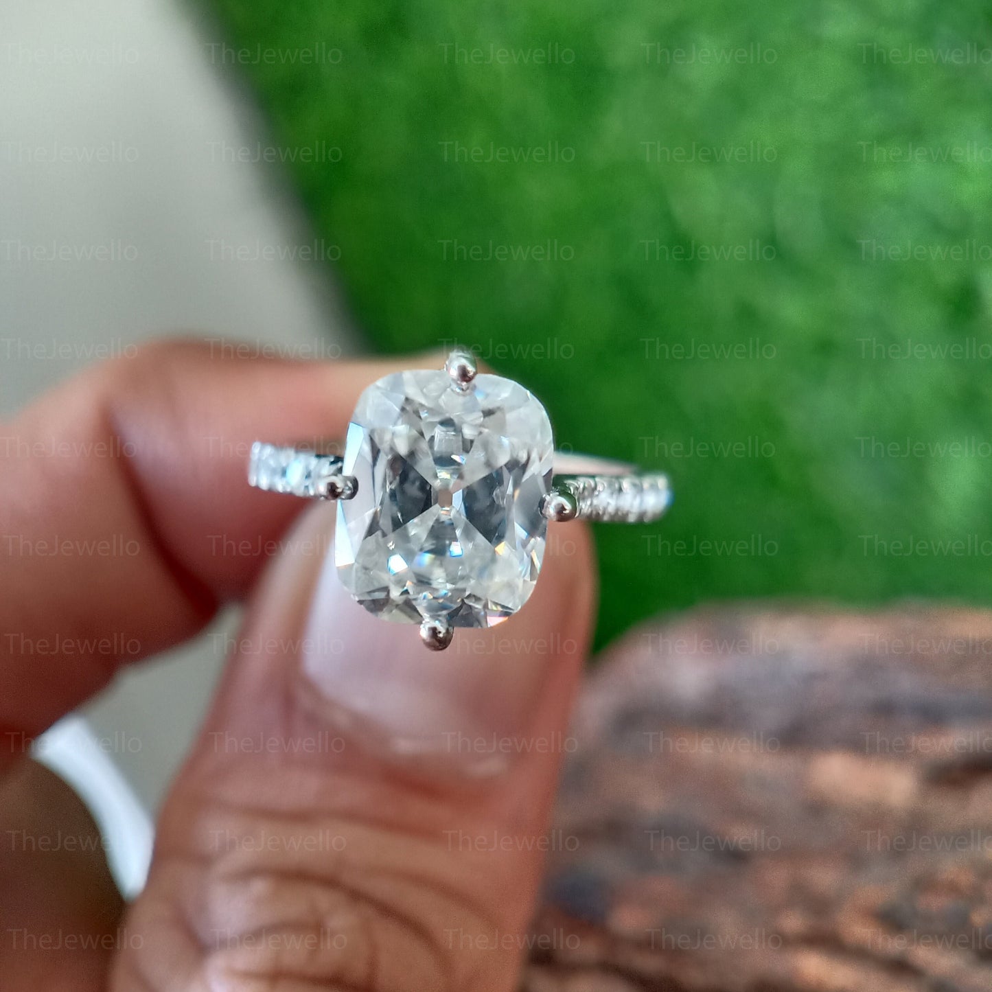 Old European Cushion Cut Moissanite Ring, 3.51 CT Elongated Cushion Moissanite Engagement Ring, Solid Real White Gold Ring
