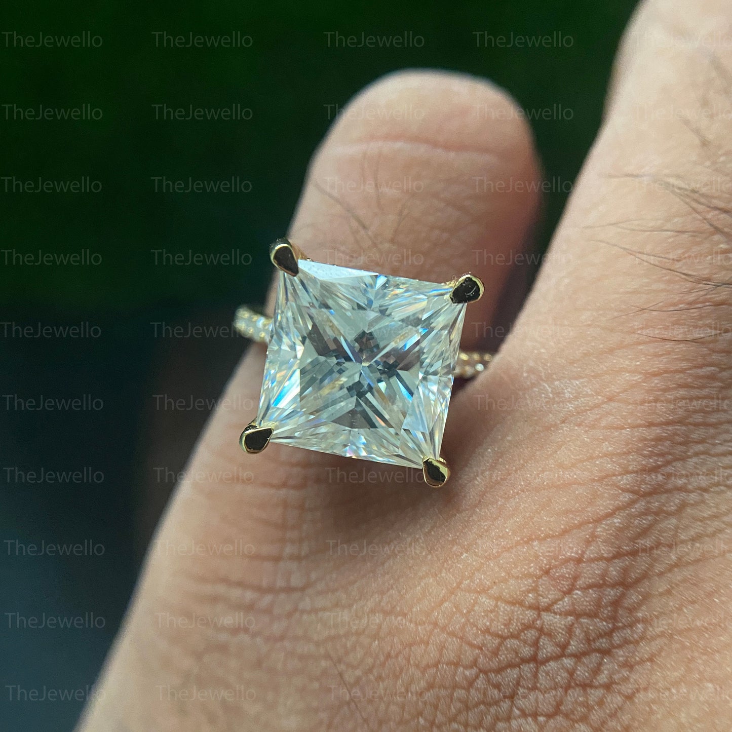 Princess Cut Engagement Ring, 14K Yellow Gold Promise Ring For Her, Handcrafted Moissanite Ring For Women, Square Shaped Moissanite Ring