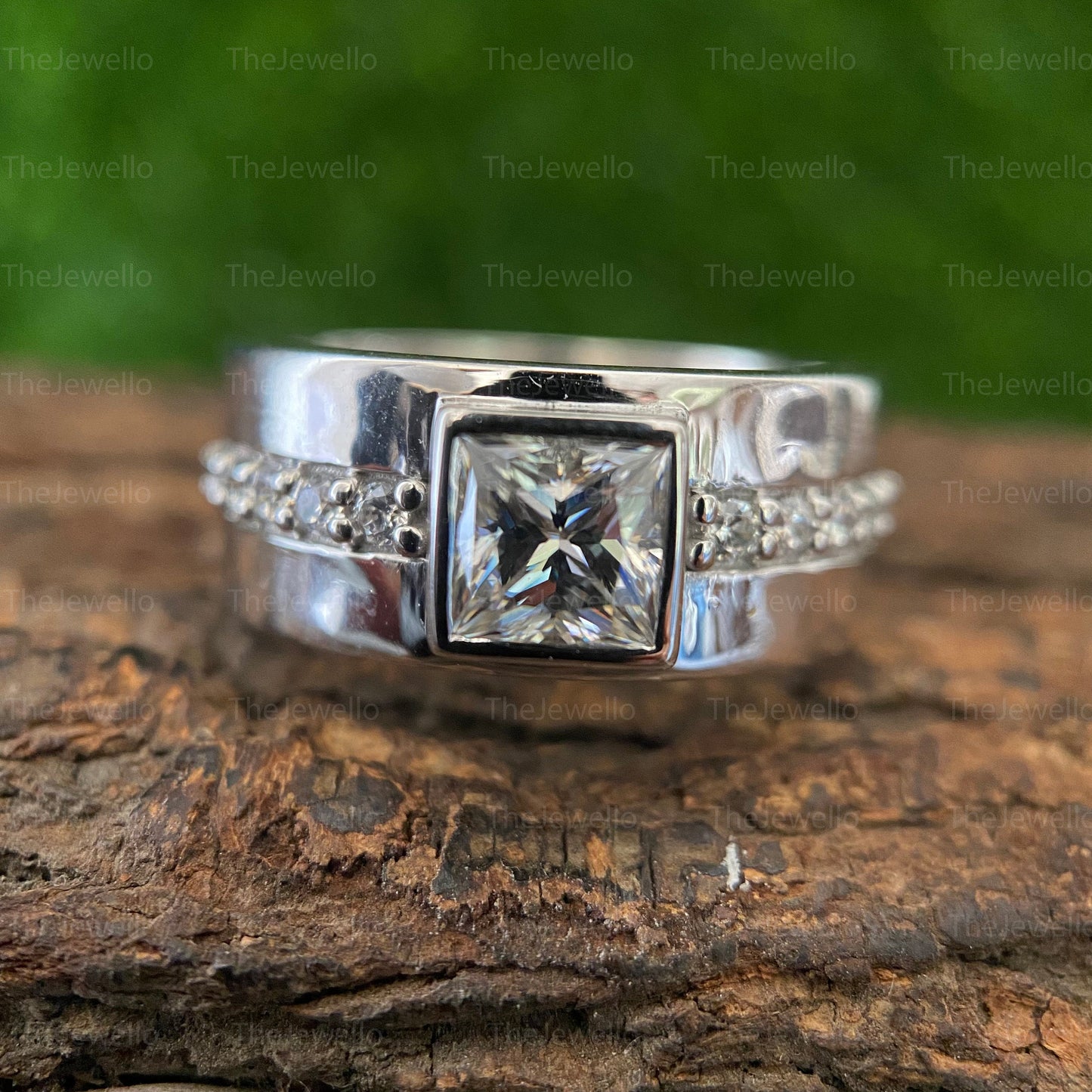Princess Cut Solitaire Ring for Men Moissanite Men Engagement Ring Office Wear Ring, Anniversary Gift Ring, Gift for him, Christmas Gift