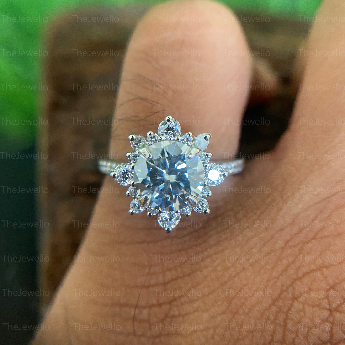 Round Gray Moissanite Ring 2 Ct 14k White Gold Eternity Band Engagement Ring Bridal Gift for Women Promise Ring