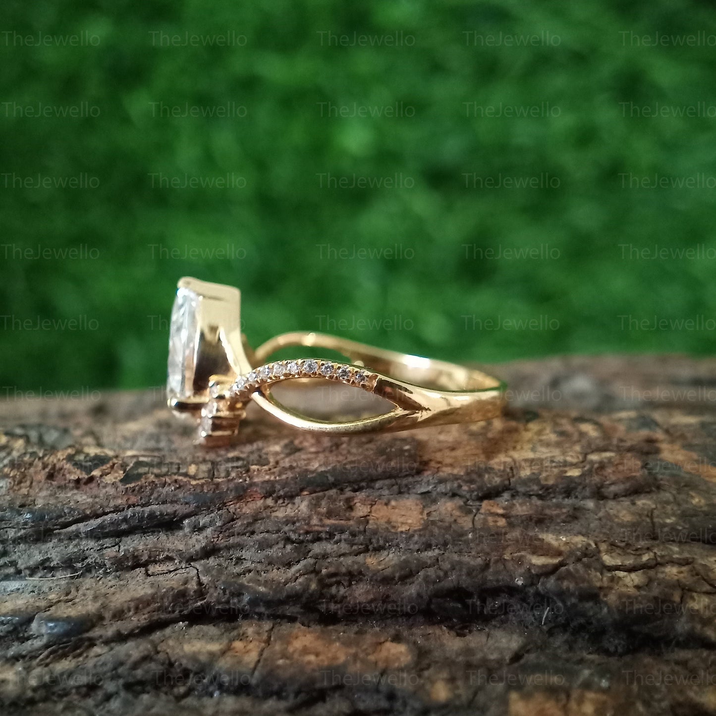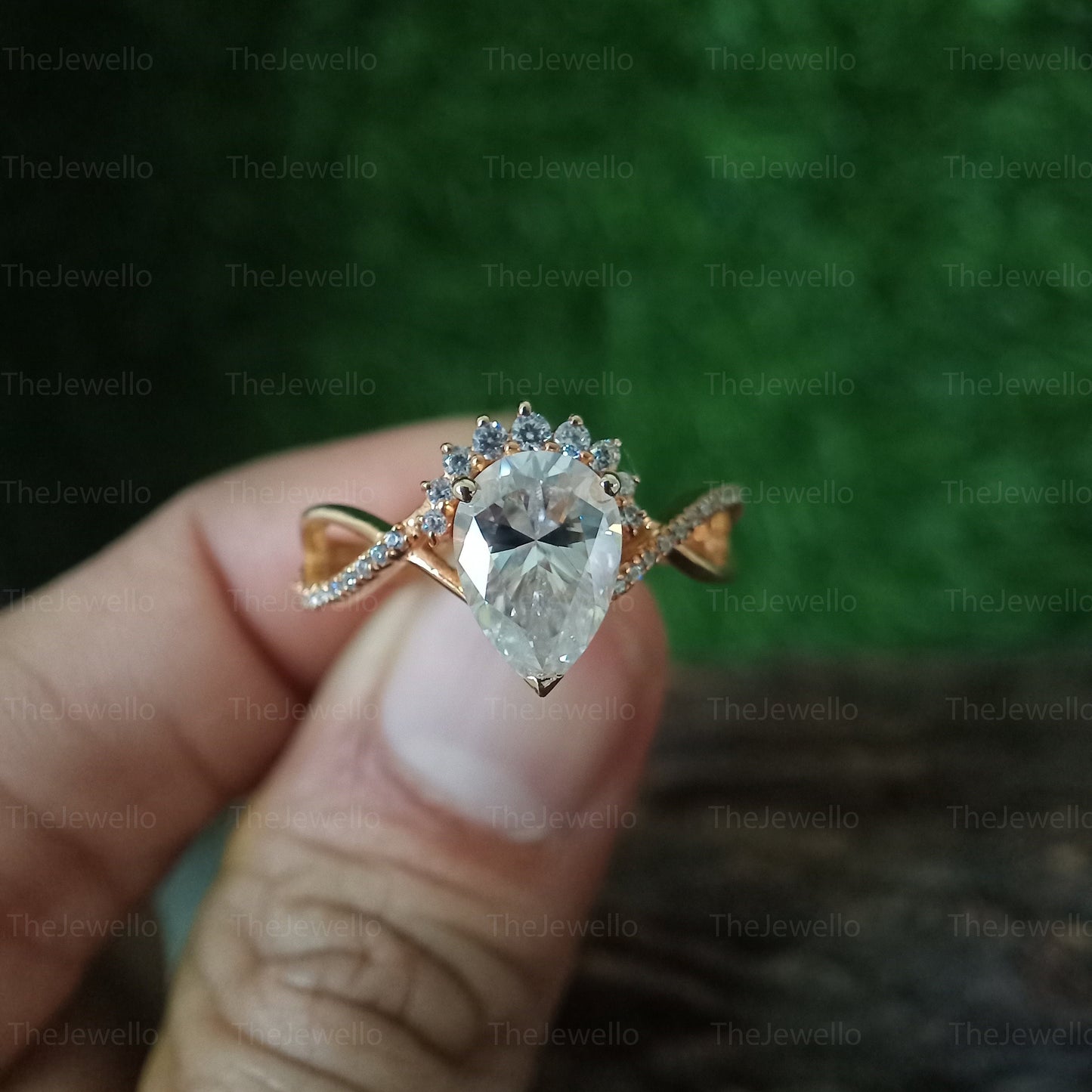 Unique Art Deco Pear Shaped Moissanite Ring, Vintage Rose Gold Bridal Ring, Promise Gift For Women, Moissanite Ring Valentine Gifts