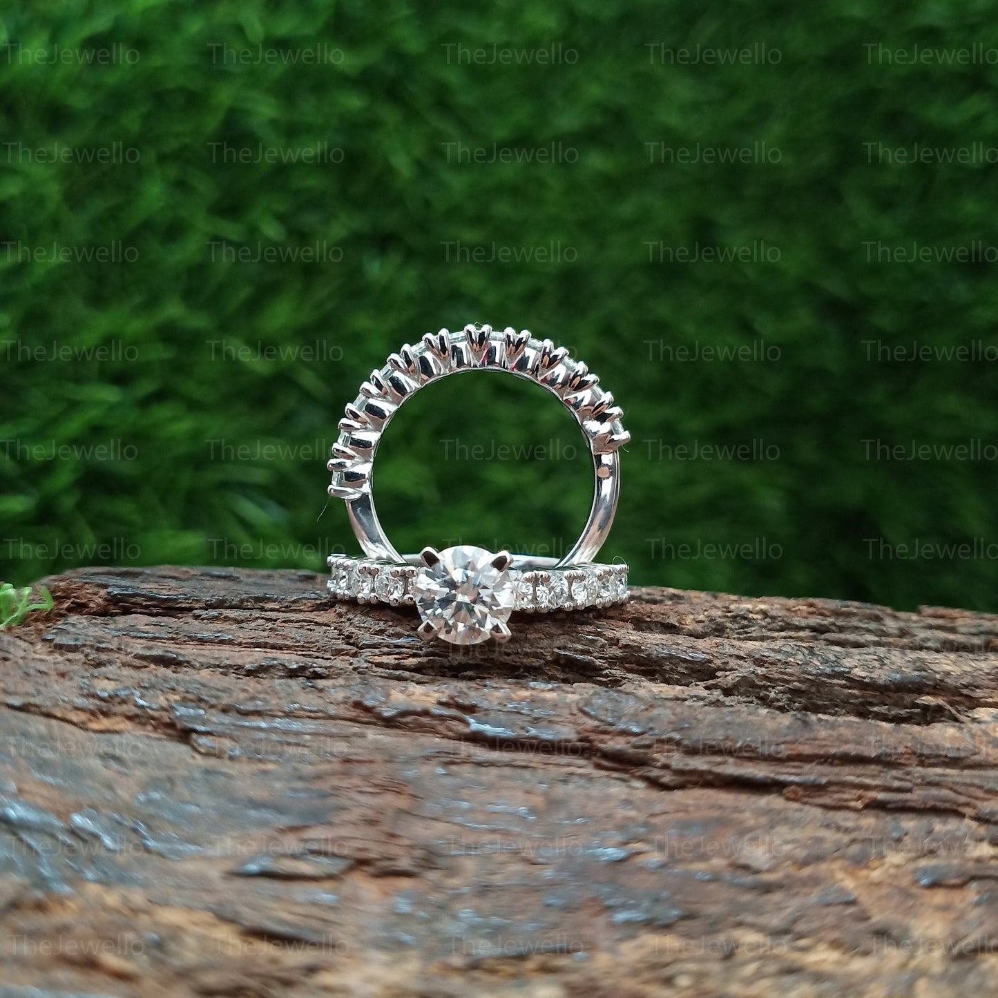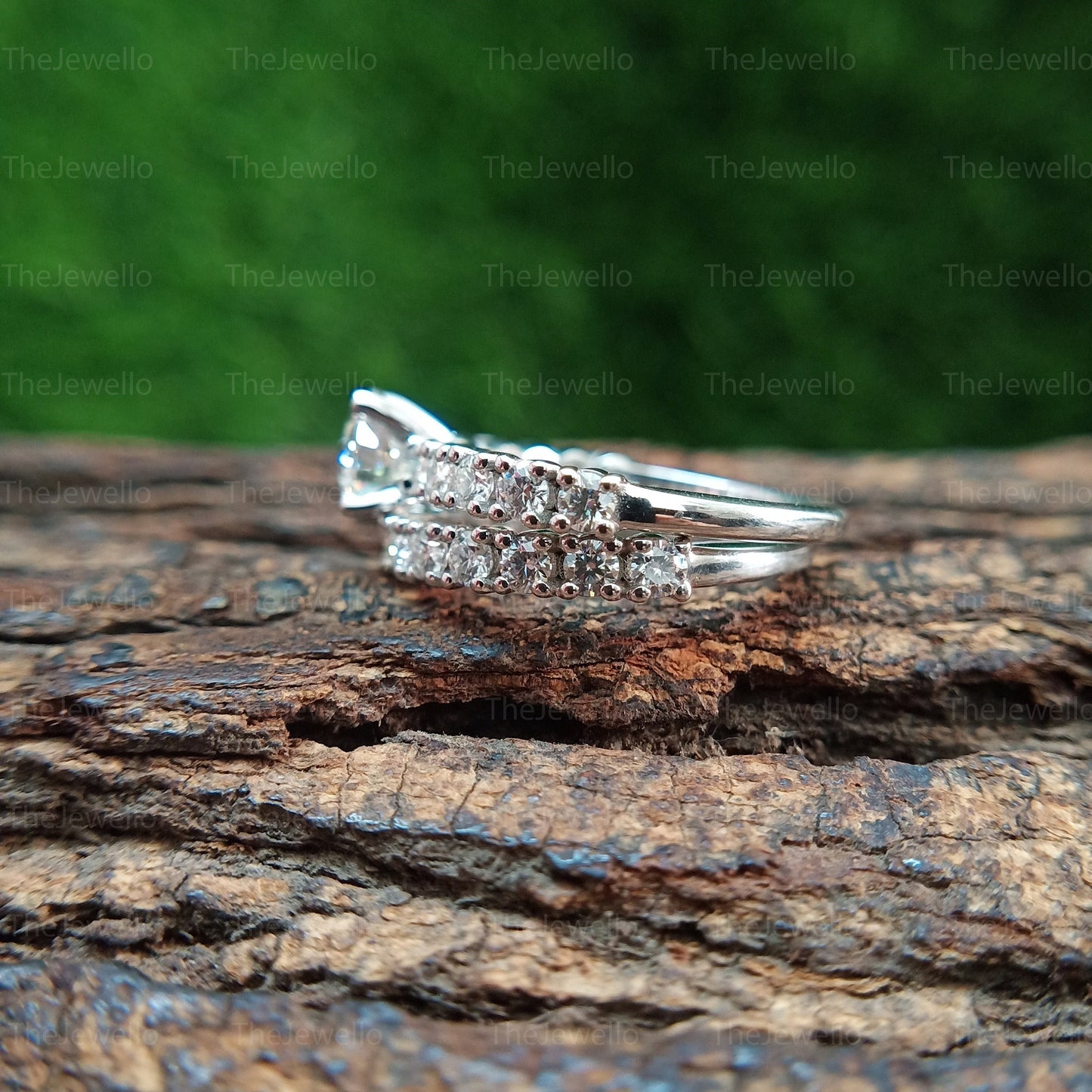 Unique Moissanite Round Cut Wedding Bridal Set Ring, Attractive Diamond Anniversary Ring, Solitaire With Accents Simulated Diamond Ring