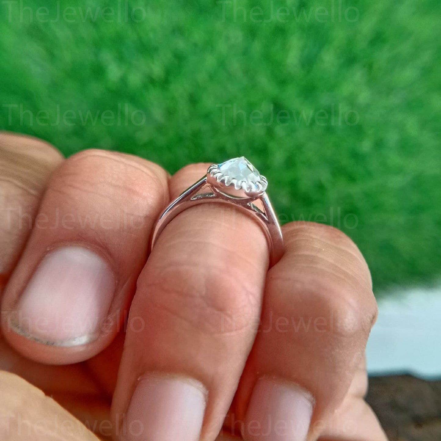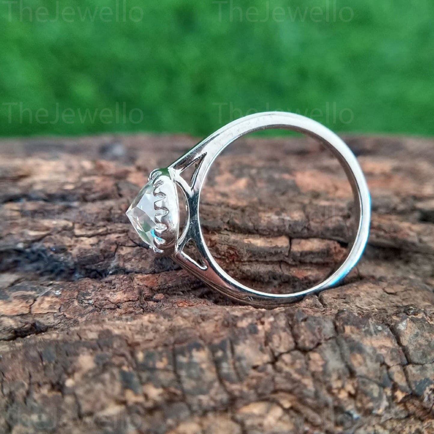 Unique Round Rose Cut Engagement Ring Solitaire Round Moissanite Ring Cathedral Set Round Moissanite Engagement Ring