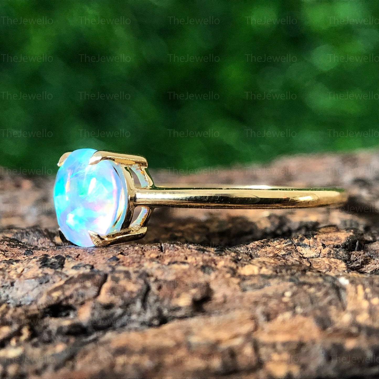 White Fire Opal Ring, 14K Yellow Gold Opal Sterling Silver Ring, Fire Opal Ring, Multicolour Fire Opal, October Birthstone Ring